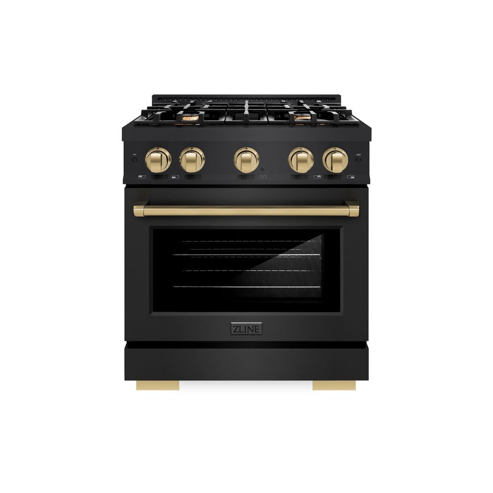 ZLINE Autograph Edition 30 in. 4.2 cu. ft. Select Gas Range with 4 Burner Cooktop and Convection Gas Oven in Black Stainless Steel and Champagne Bronze Accents (HGRBZ-30-CB)