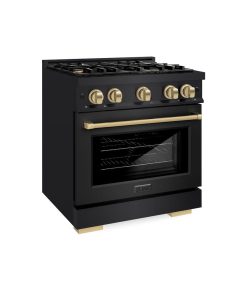 Luxury isn’t meant to be desired – it’s meant to be attainable. The ZLINE Autograph Edition 30 in. 4.2 cu. ft. Select Gas Range with 4 Burner Cooktop and Convection Gas Oven in Black Stainless Steel and Champagne Bronze Accents (HGRBZ-30-CB) combines the elegance of a hand-finished porcelain gas cooktop with 4 Italian-made auto-reignition burners, a gas convection oven with an energy-efficient cooling fan to ensure quiet operation, a Horizon oven door window design, and stunning champagne bronze knobs and handle allowing you to master every meal. With a modern, timeless style and refined functionality, ZLINE Select Gas Ranges are masterfully crafted to deliver an elevated culinary experience.