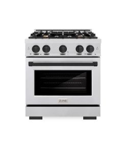 Luxury isn’t meant to be desired – it’s meant to be attainable. The ZLINE Autograph Edition 30 in. 4.2 cu. ft. Select Gas Range with 4 Burner Cooktop and Convection Gas Oven in DuraSnow® Stainless Steel and Matte Black Accents (HGRSZ-30-MB) combines the elegance of a hand-finished porcelain gas cooktop with 4 Italian-made auto-reignition burners, a gas convection oven with an energy-efficient cooling fan to ensure quiet operation, a Horizon oven door window design, and stunning matte black knobs and handle allowing you to master every meal. With a modern, timeless style and refined functionality, ZLINE Select Gas Ranges are masterfully crafted to deliver an elevated culinary experience.
