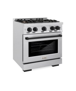 ZLINE Autograph Edition 30 in. 4.2 cu. ft. Select Gas Range with 4 Burner Cooktop and Convection Gas Oven in DuraSnow Stainless Steel and Matte Black Accents (HGRSZ-30-MB)