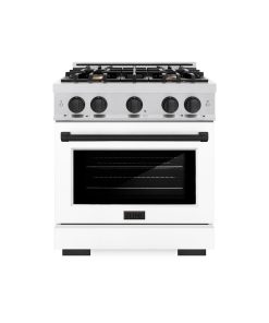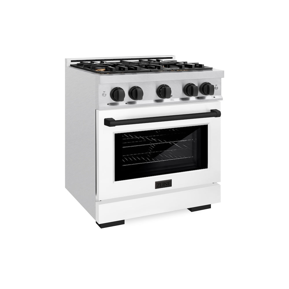 ZLINE Autograph Edition 30 in. 4.2 cu. ft. Select Gas Range with 4 Burner Cooktop and Convection Gas Oven in DuraSnow Stainless Steel with White Matte Door and Matte Black Accents (HGRSZ-WM-30-MB)