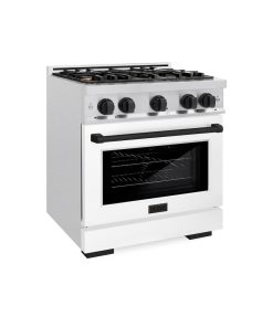 Luxury isn’t meant to be desired – it’s meant to be attainable. The ZLINE Autograph Edition 30 in. 4.2 cu. ft. Select Gas Range with 4 Burner Cooktop and Convection Gas Oven in DuraSnow® Stainless Steel with White Matte Door and Matte Black Accents (HGRSZ-WM-30-MB) combines the elegance of a hand-finished porcelain gas cooktop with 4 Italian-made auto-reignition burners, a gas convection oven with an energy-efficient cooling fan to ensure quiet operation, a beautiful white matte door with a Horizon window design, and stunning matte black knobs and handle allowing you to master every meal. With a modern, timeless style and refined functionality, ZLINE Select Gas Ranges are masterfully crafted to deliver an elevated culinary experience.