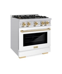 Luxury isn’t meant to be desired – it’s meant to be attainable. The ZLINE Autograph Edition 30 in. 4.2 cu. ft. Select Gas Range with 4 Burner Cooktop and Convection Gas Oven in Stainless Steel with White Matte Door and Polished Gold Accents (HGRZ-WM-30-G) combines the elegance of a hand-finished porcelain gas cooktop with 4 Italian-made auto-reignition burners, a gas convection oven with an energy-efficient cooling fan to ensure quiet operation, a beautiful white matte door with a Horizon window design, and stunning polished gold knobs and handle allowing you to master every meal. With a modern, timeless style and refined functionality, ZLINE Select Gas Ranges are masterfully crafted to deliver an elevated culinary experience.