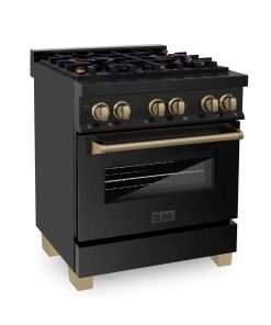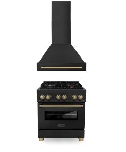 ZLINE Autograph Edition 30 in. Kitchen Package with Black Stainless Steel Dual Fuel Range and Range Hood with Champagne Bronze Accents (2AKP-RABRH30-CB)