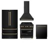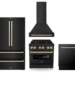 ZLINE Autograph Edition 30 in. Kitchen Package with Black Stainless Steel Dual Fuel Range, Range Hood, Dishwasher, and Refrigerator with External Water Dispenser with Polished Gold Accents (4AKPR-RABRHDWV30-G)