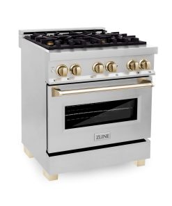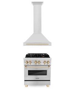 ZLINE Autograph Edition 30 in. Kitchen Package with Stainless Steel Dual Fuel Range and Range Hood with Polished Gold Accents (2AKP-RARH30-G)