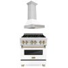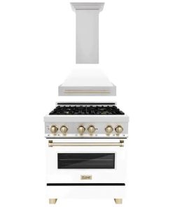 ZLINE Autograph Edition 30 in. Kitchen Package with Stainless Steel Dual Fuel Range with White Matte Door and Range Hood with Polished Gold Accents (2AKP-RAWMRH30-G)