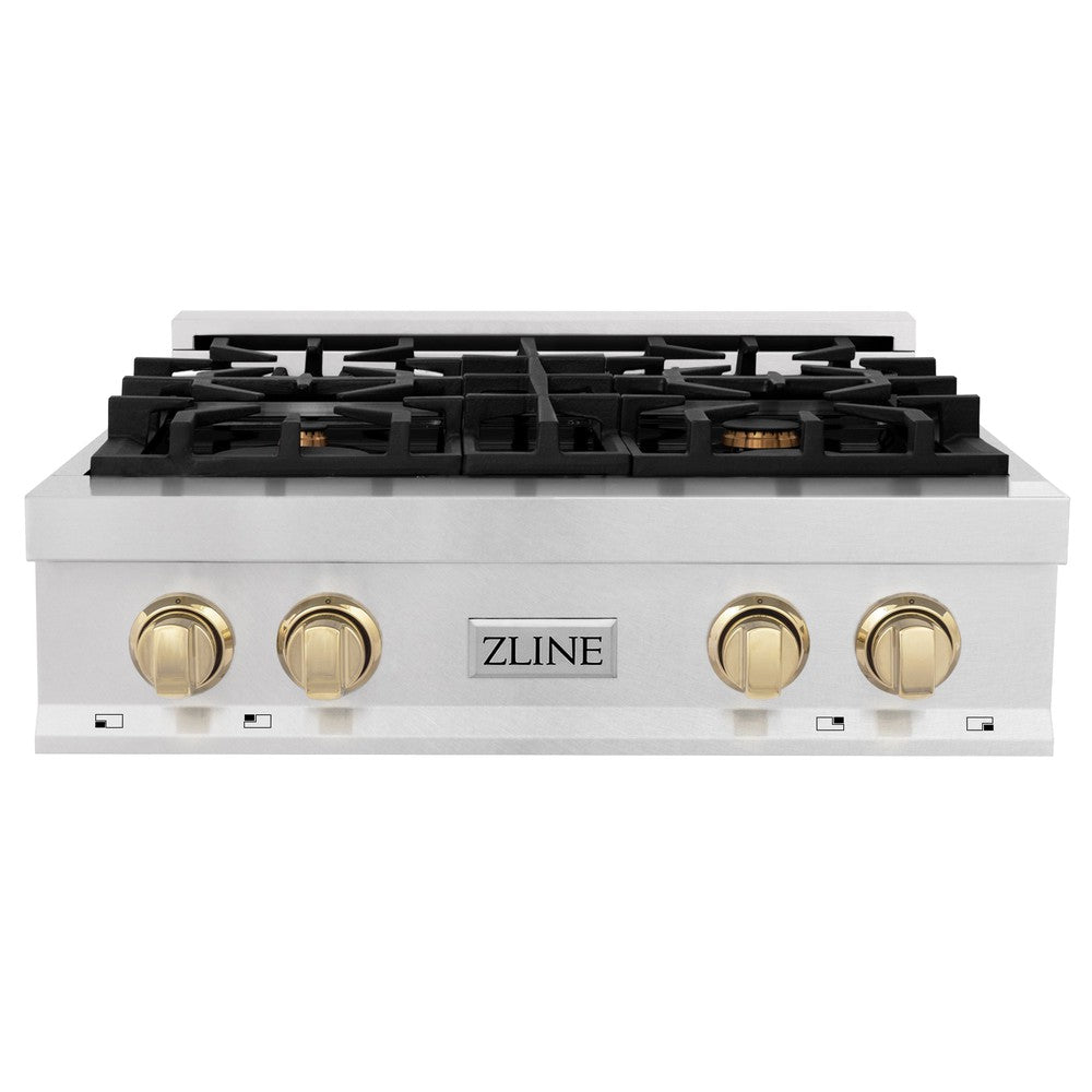 ZLINE Autograph Edition 30 in. Legacy Gas Rangetop with 4 Burners and Porcelain Cooktop in DuraSnow Stainless Steel with Polished Gold Accents (RTSZ-30-G)