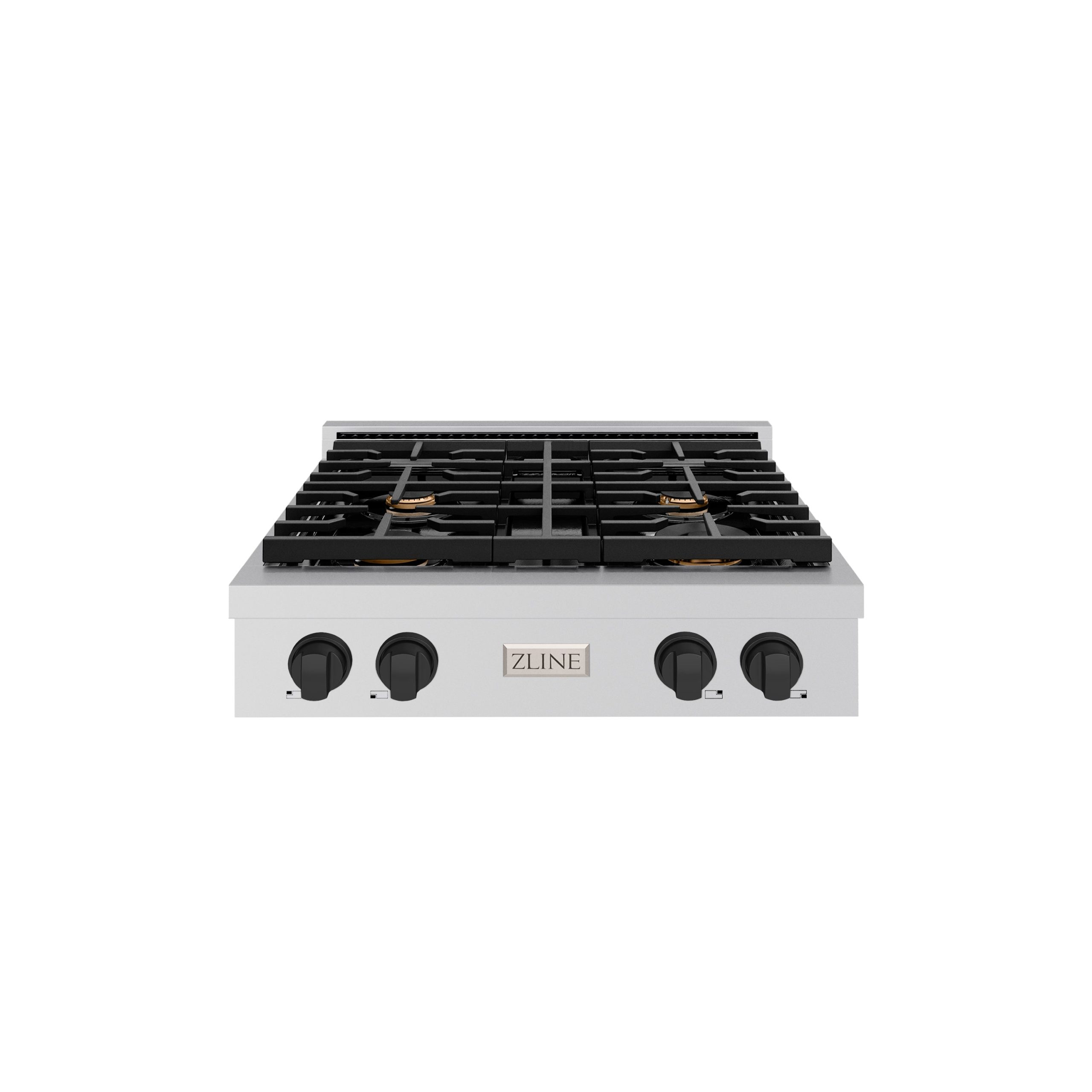 ZLINE Autograph Edition 30 in. Paramount Gas Rangetop with 4 Burners and Porcelain Cooktop in Stainless Steel with Matte Black Accents (SRTZ-30-MB)
