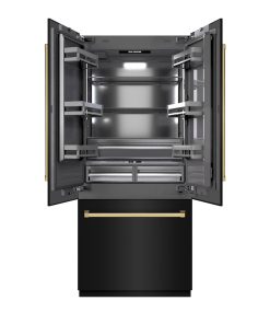 Luxury isn’t meant to be desired – it’s meant to be attainable. The ZLINE Autograph Edition 36 in. 19.6 cu. ft. French Door Built-In Bottom Freezer Refrigerator with Water Dispenser and Ice Maker in Black Stainless Steel with Graphite Gray Interior and Polished Gold Accents (GRBIVZ-BS-36-G) provides the ultimate upgrade to the center of your home by pairing premium dual cooling technology with enhanced storage capacity for multiple grocery items. Achieve ZLINE Attainable Luxury® excellence with innovative features designed to enhance your kitchen’s cooling and freezing capability.