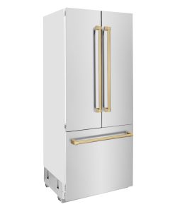 Luxury isn’t meant to be desired – it’s meant to be attainable. The ZLINE Autograph Edition 36 in. 19.6 cu. ft. French Door Built-In Bottom Freezer Refrigerator with Water Dispenser and Ice Maker in Stainless Steel with Champagne Bronze Accents (RBIVZ-304-36-CB) provides the ultimate upgrade to the center of your home by pairing premium dual cooling technology with enhanced storage capacity for multiple grocery items. Achieve ZLINE Attainable Luxury® excellence with innovative features designed to enhance your kitchen’s cooling and freezing capability.