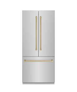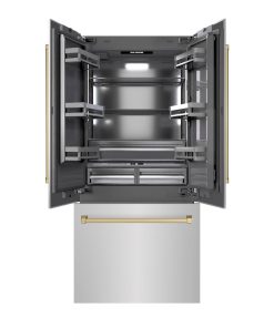 Luxury isn’t meant to be desired – it’s meant to be attainable. The ZLINE Autograph Edition 36 in. 19.6 cu. ft. French Door Built-In Bottom Freezer Refrigerator with Water Dispenser and Ice Maker in Stainless Steel with Graphite Gray Interior and Champagne Bronze Accents (GRBIVZ-304-36CB) provides the ultimate upgrade to the center of your home by pairing premium dual cooling technology with enhanced storage capacity for multiple grocery items. Achieve ZLINE Attainable Luxury® excellence with innovative features designed to enhance your kitchen’s cooling and freezing capability.