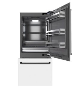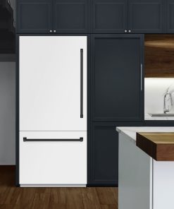ZLINE Autograph Edition 36 in. 19.8 cu. ft. Built-In Bottom Freezer Refrigerator with Water Dispenser and Ice Maker in White Matte with Graphite Gray Interior and Matte Black Accents (GRBITZ-WM-36-MB)