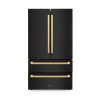 ZLINE Autograph Edition 36 in. 21.6 cu. ft. Counter-Depth French Door Refrigerator with Water and Ice Dispenser in Fingerprint-Resistant Black Stainless Steel with Polished Gold Modern Handles (RFMZ-W-36-BS-FG)