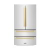 ZLINE Autograph Edition 36 in. 21.6 cu. ft. Counter-Depth French Door Refrigerator with Water and Ice Dispenser in Fingerprint-Resistant Stainless Steel with Polished Gold Modern Handles (RFMZ-W-36-FG)