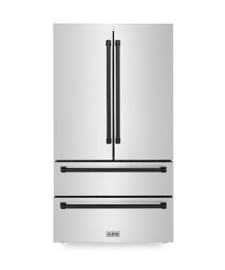 Luxury isn’t meant to be desired – it’s meant to be attainable. The ZLINE Autograph Edition 36 in. 22.5 cu. ft. Counter-Depth French Door Refrigerator with Ice Maker in Fingerprint-Resistant Stainless Steel with Matte Black Traditional Handles (RFMZ-36-MB) delivers an elevated experience by pairing innovative dual cooling technology with a spacious counter-depth design and a high-capacity built-in ice maker. Achieve ZLINE Attainable Luxury® excellence with timeless features designed to enhance your kitchen’s capability.