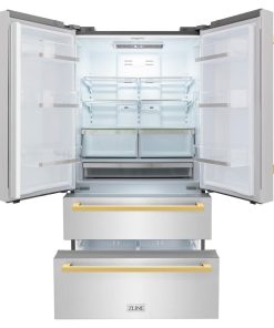 Luxury isn’t meant to be desired – it’s meant to be attainable. The ZLINE Autograph Edition 36 in. 22.5 cu. ft. Counter-Depth French Door Refrigerator with Ice Maker in Fingerprint-Resistant Stainless Steel with Polished Gold Modern Handles (RFMZ-36-FG) delivers an elevated experience by pairing innovative dual cooling technology with a spacious counter-depth design and a high-capacity built-in ice maker. Achieve ZLINE Attainable Luxury® excellence with timeless features designed to enhance your kitchen’s capability.