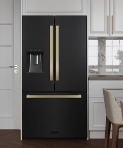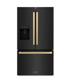 Luxury isn’t meant to be desired — it’s meant to be attainable. The ZLINE Autograph Edition 36 in. 28.9 cu. ft. Standard-Depth French Door External Water Dispenser Refrigerator with Dual Ice Maker in Fingerprint-Resistant Black Stainless Steel and Champagne Bronze Modern Handles (RSMZ-W36-BS-FCB) features a state-of-the-art cooling system, a professional built-in water and ice dispenser, and an expansive interior designed to store more items than ever before. With an elevated level of luxurious design, ZLINE Autograph Edition Standard-Depth Refrigerators are masterfully crafted to preserve more space for what matters.