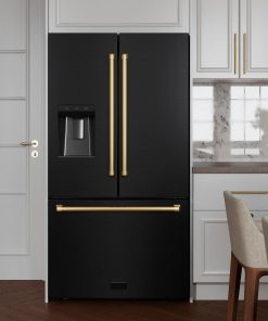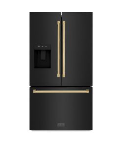 Luxury isn’t meant to be desired — it’s meant to be attainable. The ZLINE Autograph Edition 36 in. 28.9 cu. ft. Standard-Depth French Door External Water Dispenser Refrigerator with Dual Ice Maker in Fingerprint-Resistant Black Stainless Steel and Polished Gold Traditional Handles (RSMZ-W-36-BS-G) features a state-of-the-art cooling system, a professional built-in water and ice dispenser, and an expansive interior designed to store more items than ever before. With an elevated level of luxurious design, ZLINE Autograph Edition Standard-Depth Refrigerators are masterfully crafted to preserve more space for what matters.