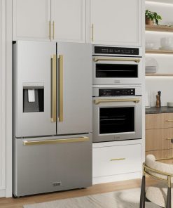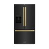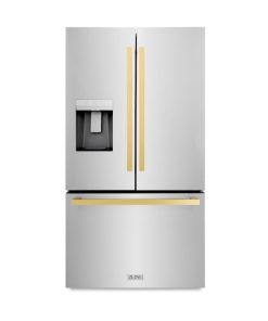 Luxury isn’t meant to be desired — it’s meant to be attainable. The ZLINE Autograph Edition 36 in. 28.9 cu. ft. Standard-Depth French Door External Water Dispenser Refrigerator with Dual Ice Maker in Fingerprint-Resistant Stainless Steel and Polished Gold Modern Handles (RSMZ-W-36-FG) features a state-of-the-art cooling system, a professional built-in water and ice dispenser, and an expansive interior designed to store more items than ever before. With an elevated level of luxurious design, ZLINE Autograph Edition Standard-Depth Refrigerators are masterfully crafted to preserve more space for what matters.