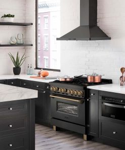 ZLINE Autograph Edition 36 in. 4.6 cu. ft. Legacy Dual Fuel Range with 6 Burner Gas Cooktop and Electric Convection Oven in Black Stainless Steel and Champagne Bronze Accents (RABZ-36-CB)