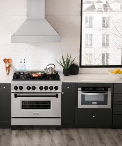 Luxury isn’t meant to be desired – it’s meant to be attainable. The ZLINE Autograph Edition 36 in. 4.6 cu. ft. Legacy Dual Fuel Range with 6 Burner Gas Cooktop and Electric Convection Oven in DuraSnow® Stainless Steel and Matte Black Accents (RASZ-SN-36-MB) pairs a powerful gas cooktop with 6 Italian-crafted burners, an electric convection oven with a Landscape oven door window design, and elegant matte black knobs and handle. With innovative features designed to enhance your kitchen’s capability, ZLINE Legacy Dual Fuel Ranges provide a professional culinary experience by pairing unmatched performance with timeless style.