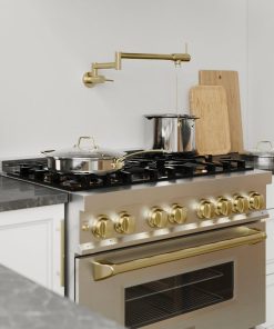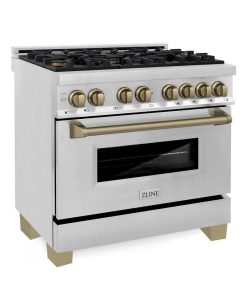 ZLINE Autograph Edition 36 in. 4.6 cu. ft. Legacy Dual Fuel Range with 6 Burner Gas Cooktop and Electric Convection Oven in Stainless Steel and Champagne Bronze Accents (RAZ-36-CB)