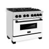 ZLINE Autograph Edition 36 in. 4.6 cu. ft. Legacy Dual Fuel Range with 6 Burner Gas Cooktop and Electric Convection Oven in Stainless Steel with White Matte Door and Champagne Bronze Accents (RAZ-WM-36-CB)