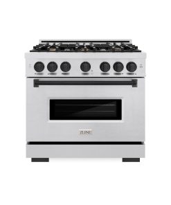 ZLINE Autograph Edition 36 in. 5.2 cu. ft. Classic Dual Fuel Range with 6 Burner Gas Cooktop and Electric Convection Oven in DuraSnow Stainless Steel with Matte Black Accents (CDRSZ-36-MB)
