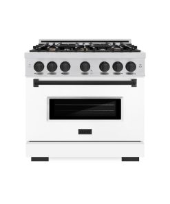 Luxury isn’t meant to be desired – it’s meant to be attainable. The ZLINE Autograph Edition 36 in. 5.2 cu. ft. Classic Dual Fuel Range with 6 Burner Gas Cooktop and Electric Convection Oven in Stainless Steel with White Matte Door and Matte Black Accents (CDRZ-WM-36-MB) combines the elegance of a hand-finished porcelain gas cooktop with 6 Italian-made auto-reignition burners, an electric convection oven with an energy-efficient cooling fan to ensure quiet operation, a beautiful white matte door with a Landscape window design, and stunning matte black knobs and handle allowing you to master every meal. With a modern, timeless style and refined functionality, ZLINE Classic Dual Fuel Ranges are masterfully crafted to deliver an elevated culinary experience.