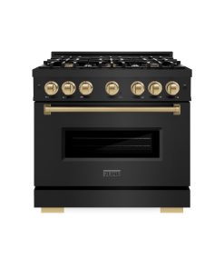 ZLINE Autograph Edition 36 in. 5.2 cu. ft. Classic Gas Range with 6 Burner Cooktop and Convection Gas Oven in Black Stainless Steel and Champagne Bronze Accents (CGRBZ-36-CB)