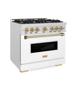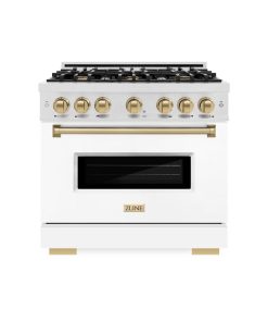 Luxury isn’t meant to be desired – it’s meant to be attainable. The ZLINE Autograph Edition 36 in. 5.2 cu. ft. Classic Gas Range with 6 Burner Cooktop and Convection Gas Oven in DuraSnow® Stainless Steel with White Matte Door and Champagne Bronze Accents (CGRSZ-WM-36-CB) combines the elegance of a hand-finished porcelain gas cooktop with 6 Italian-made auto-reignition burners, a gas convection oven with an energy-efficient cooling fan to ensure quiet operation, a beautiful white matte door with a Landscape window design, and stunning champagne bronze knobs and handle allowing you to master every meal. With a modern, timeless style and refined functionality, ZLINE Classic Gas Ranges are masterfully crafted to deliver an elevated culinary experience.