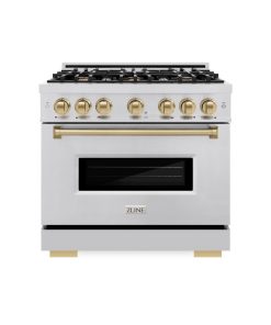 ZLINE Autograph Edition 36 in. 5.2 cu. ft. Classic Gas Range with 6 Burner Cooktop and Convection Gas Oven in Stainless Steel and Champagne Bronze Accents (CGRZ-36-CB)