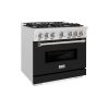 ZLINE Autograph Edition 36 in. 5.2 cu. ft. Classic Gas Range with 6 Burner Cooktop and Convection Gas Oven in Stainless Steel with Black Matte Door and Champagne Bronze Accents (CGRZ-BLM-36-CB)