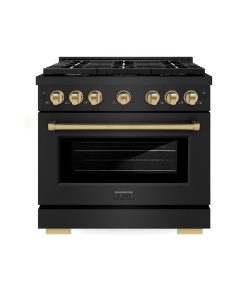 ZLINE Autograph Edition 36 in. 5.2 cu. ft. Paramount Dual Fuel Range with 6 Burner Gas Cooktop and Electric Convection Oven in Black Stainless Steel with Champagne Bronze Accents (SDRBZ-36-CB)