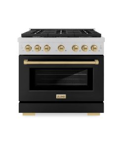 ZLINE Autograph Edition 36 in. 5.2 cu. ft. Paramount Dual Fuel Range with 6 Burner Gas Cooktop and Electric Convection Oven in DuraSnow Stainless Steel with Black Matte Door and Champagne Bronze Accents (SDRSZ-BLM-36-CB)