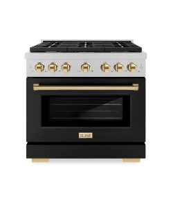 Luxury isn’t meant to be desired – it’s meant to be attainable. The ZLINE Autograph Edition 36 in. 5.2 cu. ft. Paramount Dual Fuel Range with 6 Burner Gas Cooktop and Electric Convection Oven in DuraSnow® Stainless Steel with Black Matte Door and Polished Gold Accents (SDRSZ-BLM-36-G) combines the versatility of a gas cooktop with 6 Italian-made auto-reignition burners, an electric convection oven with digital thermostat technology, enhanced cast iron grates, a beautiful black matte door with a Horizon window design, and elegant polished gold knobs and handle allowing you to master every meal. With a modern, timeless style and refined functionality, ZLINE Paramount Dual Fuel Ranges are masterfully crafted to deliver an elevated culinary experience.
