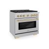ZLINE Autograph Edition 36 in. 5.2 cu. ft. Paramount Dual Fuel Range with 6 Burner Gas Cooktop and Electric Convection Oven in DuraSnow Stainless Steel with Matte Black Accents (SDRSZ-36-MB)
