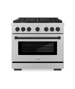 Luxury isn’t meant to be desired – it’s meant to be attainable. The ZLINE Autograph Edition 36 in. 5.2 cu. ft. Paramount Dual Fuel Range with 6 Burner Gas Cooktop and Electric Convection Oven in DuraSnow® Stainless Steel with Matte Black Accents (SDRSZ-36-MB) combines the versatility of a gas cooktop with 6 Italian-made auto-reignition burners, an electric convection oven with digital thermostat technology, enhanced cast iron grates, a Horizon oven door window design, and elegant matte black knobs and handle allowing you to master every meal. With a modern, timeless style and refined functionality, ZLINE Paramount Dual Fuel Ranges are masterfully crafted to deliver an elevated culinary experience.
