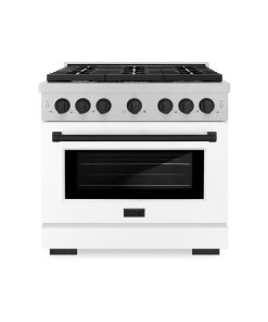 ZLINE Autograph Edition 36 in. 5.2 cu. ft. Paramount Dual Fuel Range with 6 Burner Gas Cooktop and Electric Convection Oven in DuraSnow Stainless Steel with White Matte Door and Matte Black Accents (SDRSZ-WM-36-MB)