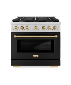 Luxury isn’t meant to be desired – it’s meant to be attainable. The ZLINE Autograph Edition 36 in. 5.2 cu. ft. Paramount Dual Fuel Range with 6 Burner Gas Cooktop and Electric Convection Oven in Stainless Steel with Black Matte Door and Champagne Bronze Accents (SDRZ-BLM-36-CB) combines the versatility of a gas cooktop with 6 Italian-made auto-reignition burners, an electric convection oven with digital thermostat technology, enhanced cast iron grates, a beautiful black matte door with a Horizon window design, and elegant champagne bronze knobs and handle allowing you to master every meal. With a modern, timeless style and refined functionality, ZLINE Paramount Dual Fuel Ranges are masterfully crafted to deliver an elevated culinary experience.