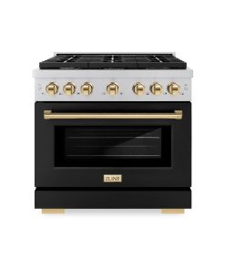 Luxury isn’t meant to be desired – it’s meant to be attainable. The ZLINE Autograph Edition 36 in. 5.2 cu. ft. Paramount Dual Fuel Range with 6 Burner Gas Cooktop and Electric Convection Oven in Stainless Steel with Black Matte Door and Polished Gold Accents (SDRZ-BLM-36-G) combines the versatility of a gas cooktop with 6 Italian-made auto-reignition burners, an electric convection oven with digital thermostat technology, enhanced cast iron grates, a beautiful black matte door with a Horizon window design, and elegant polished gold knobs and handle allowing you to master every meal. With a modern, timeless style and refined functionality, ZLINE Paramount Dual Fuel Ranges are masterfully crafted to deliver an elevated culinary experience.
