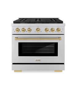 Luxury isn’t meant to be desired – it’s meant to be attainable. The ZLINE Autograph Edition 36 in. 5.2 cu. ft. Paramount Dual Fuel Range with 6 Burner Gas Cooktop and Electric Convection Oven in Stainless Steel with Champagne Bronze Accents (SDRZ-36-CB) combines the versatility of a gas cooktop with 6 Italian-made auto-reignition burners, an electric convection oven with digital thermostat technology, enhanced cast iron grates, a Horizon oven door window design, and elegant champagne bronze knobs and handle allowing you to master every meal. With a modern, timeless style and refined functionality, ZLINE Paramount Dual Fuel Ranges are masterfully crafted to deliver an elevated culinary experience.