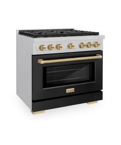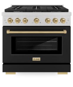 Luxury isn’t meant to be desired – it’s meant to be attainable. The ZLINE Autograph Edition 36 in. 5.2 cu. ft. Paramount Gas Range with 6 Burner Cooktop and Convection Gas Oven in DuraSnow® Stainless Steel with Black Matte Door and Champagne Bronze Accents (SGRSZ-BLM-36-CB) features a versatile gas cooktop with 6 Italian-made auto-reignition burners, a high-performing gas convection oven, enhanced cast iron grates, a beautiful black matte door with a Horizon window design, and elegant champagne bronze knobs and handle allowing you to master every meal. With a modern, timeless style and refined functionality, ZLINE Paramount Gas Ranges are masterfully crafted to deliver an elevated culinary experience.