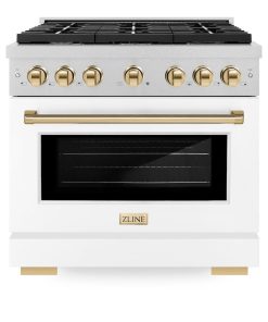 Luxury isn’t meant to be desired – it’s meant to be attainable. The ZLINE Autograph Edition 36 in. 5.2 cu. ft. Paramount Gas Range with 6 Burner Cooktop and Convection Gas Oven in DuraSnow® Stainless Steel with White Matte Door and Polished Gold Accents (SGRSZ-WM-36-G) features a versatile gas cooktop with 6 Italian-made auto-reignition burners, a high-performing gas convection oven, enhanced cast iron grates, a beautiful white matte door with a Horizon window design, and elegant polished gold knobs and handle allowing you to master every meal. With a modern, timeless style and refined functionality, ZLINE Paramount Gas Ranges are masterfully crafted to deliver an elevated culinary experience.