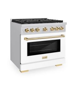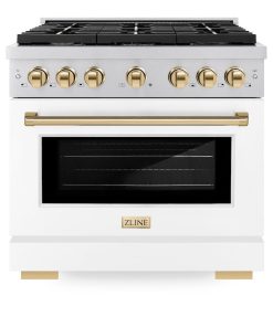 Luxury isn’t meant to be desired – it’s meant to be attainable. The ZLINE Autograph Edition 36 in. 5.2 cu. ft. Paramount Gas Range with 6 Burner Cooktop and Convection Gas Oven in Stainless Steel with White Matte Door and Polished Gold Accents (SGRZ-WM-36-G) features a versatile gas cooktop with 6 Italian-made auto-reignition burners, a high-performing gas convection oven, enhanced cast iron grates, a beautiful white matte door with a Horizon window design, and elegant polished gold knobs and handle allowing you to master every meal. With a modern, timeless style and refined functionality, ZLINE Paramount Gas Ranges are masterfully crafted to deliver an elevated culinary experience.