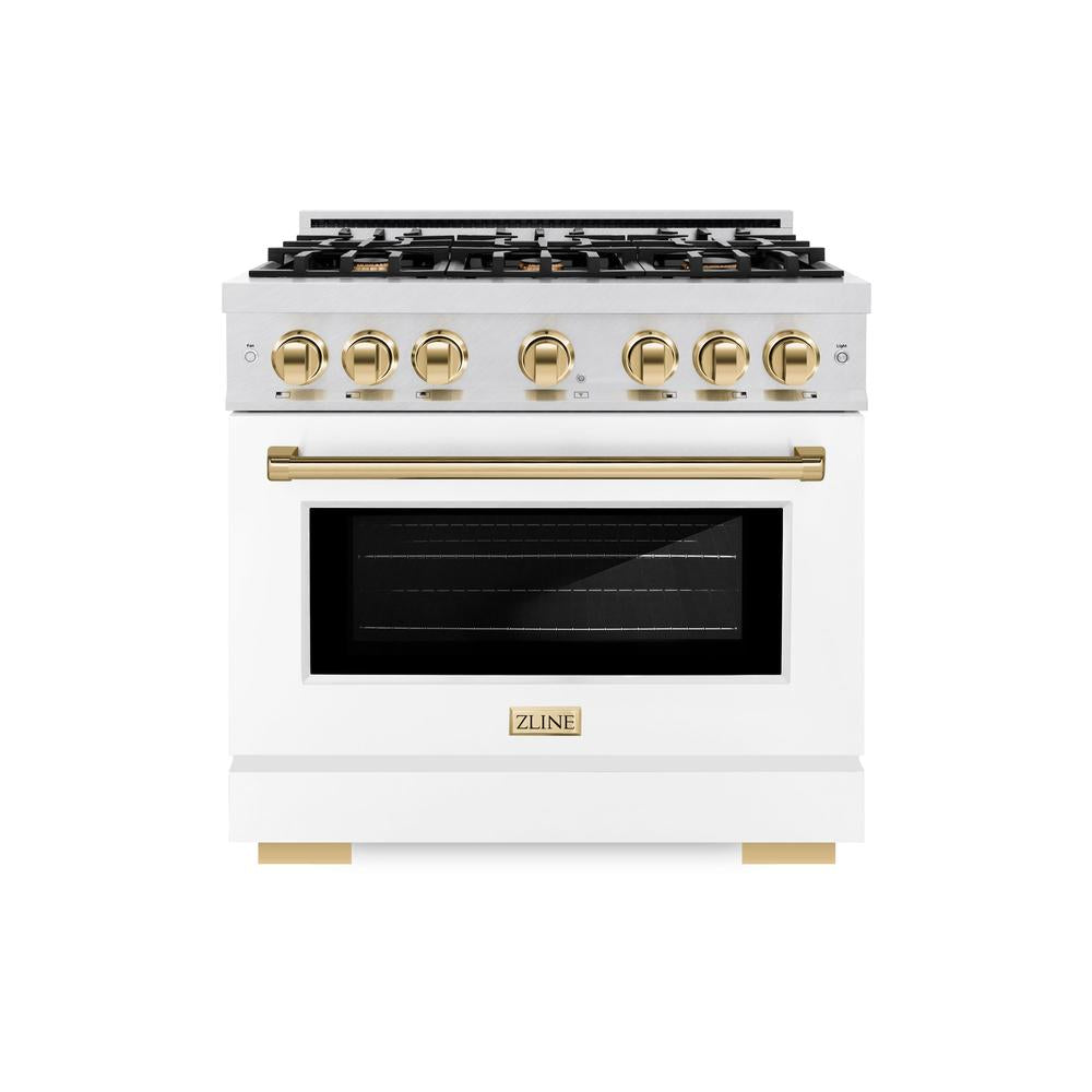 ZLINE Autograph Edition 36 in. 5.2 cu. ft. Select Gas Range with 6 Burner Cooktop and Convection Gas Oven in DuraSnow Stainless Steel with White Matte Door and Polished Gold Accents (HGRSZ-WM-36-G)