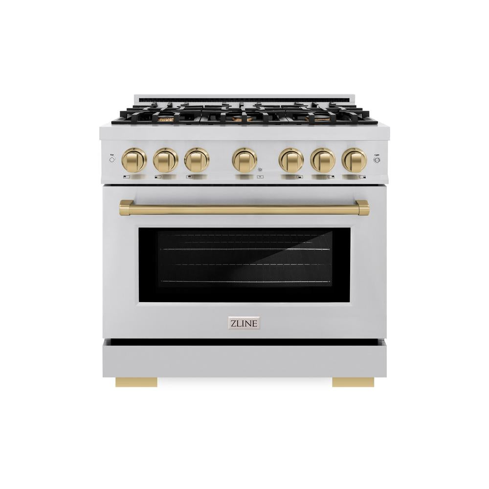ZLINE Autograph Edition 36 in. 5.2 cu. ft. Select Gas Range with 6 Burner Cooktop and Convection Gas Oven in Stainless Steel and Champagne Bronze Accents (HGRZ-36-CB)