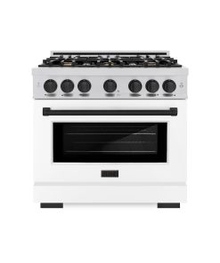 ZLINE Autograph Edition 36 in. 5.2 cu. ft. Select Gas Range with 6 Burner Cooktop and Convection Gas Oven in Stainless Steel with White Matte Door and Matte Black Accents (HGRZ-WM-36-MB)