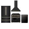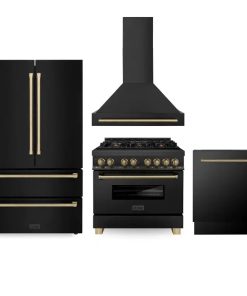 ZLINE Autograph Edition 36 in. Kitchen Package with Black Stainless Steel Dual Fuel Range, Range Hood, Dishwasher and Refrigerator Including Internal Water Dispenser with Champagne Bronze Accents (4AKPR-RABRHDWV36-CB)
